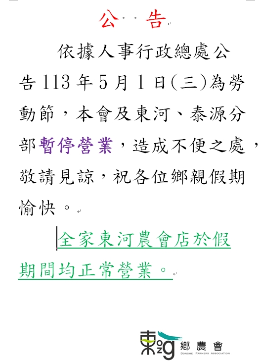 勞動節假期公告