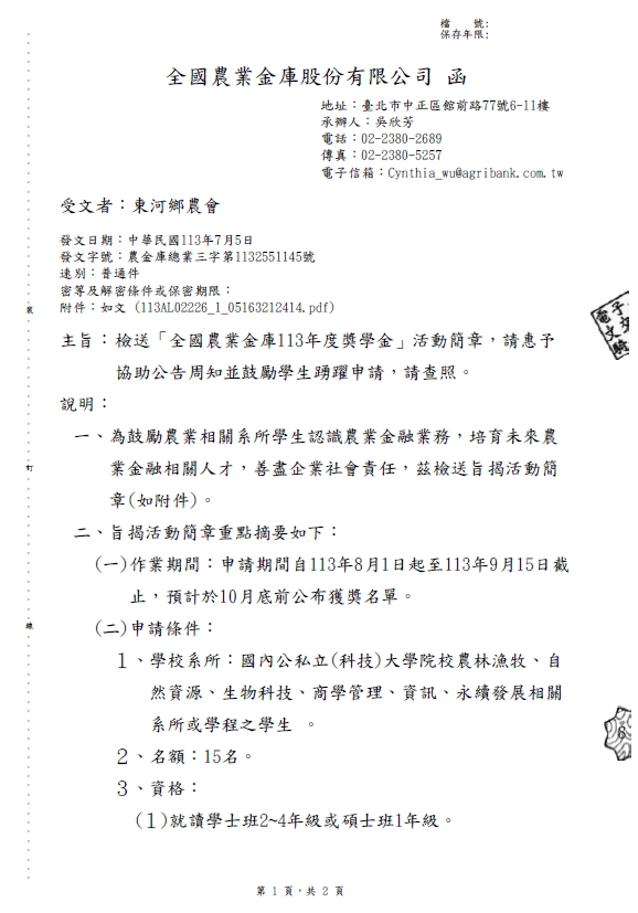 #政策宣導 #信用金融 標題 全國農業金庫113年度獎學金活動簡章 日期 2024/07/08 附件 113AL02226_1_05163212414.pdf 圖片 1720411252949_0.jpg 內容