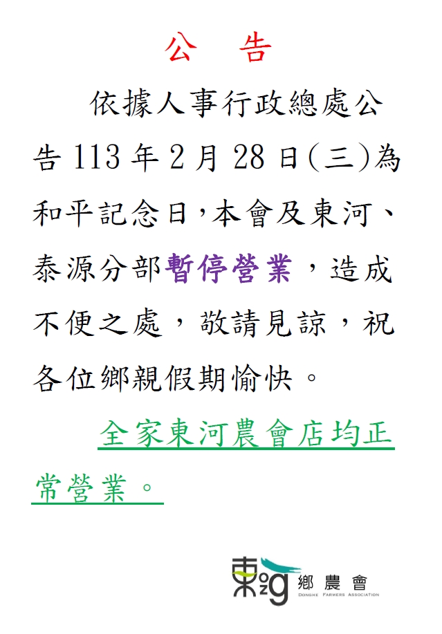 113年和平紀念日假期公告