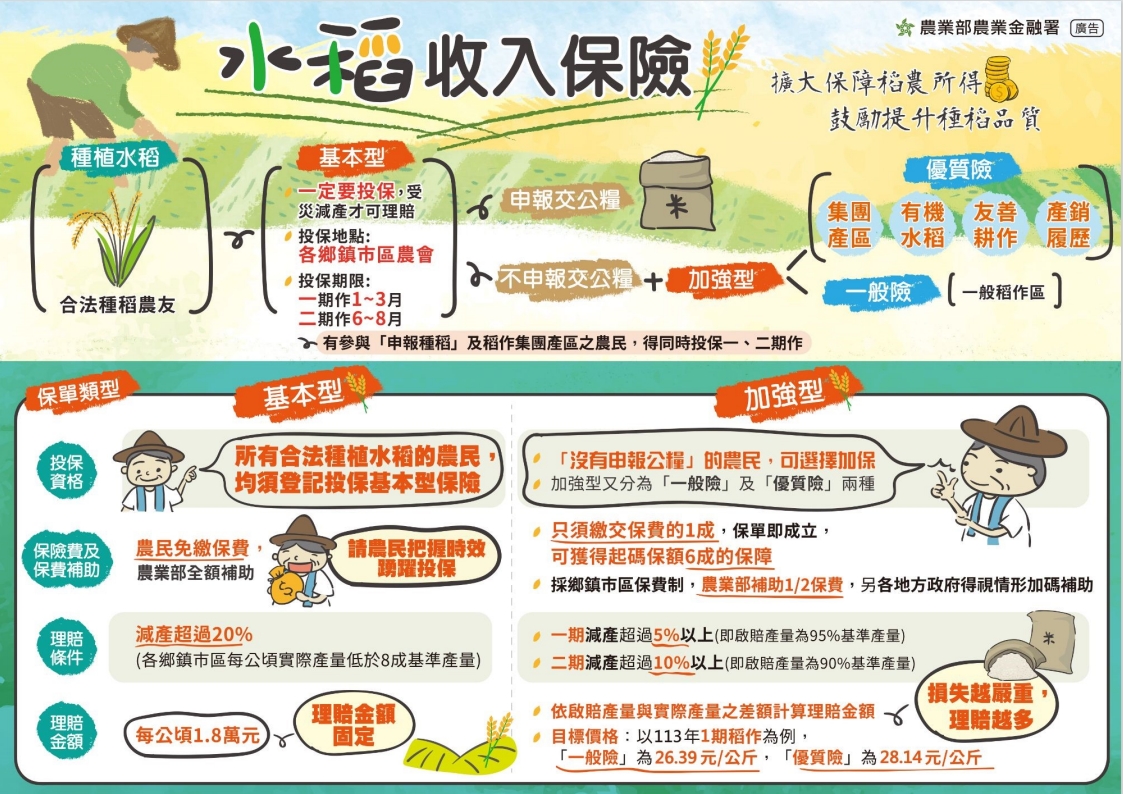 113年1期水稻收入保險受理期間1/1-3/31