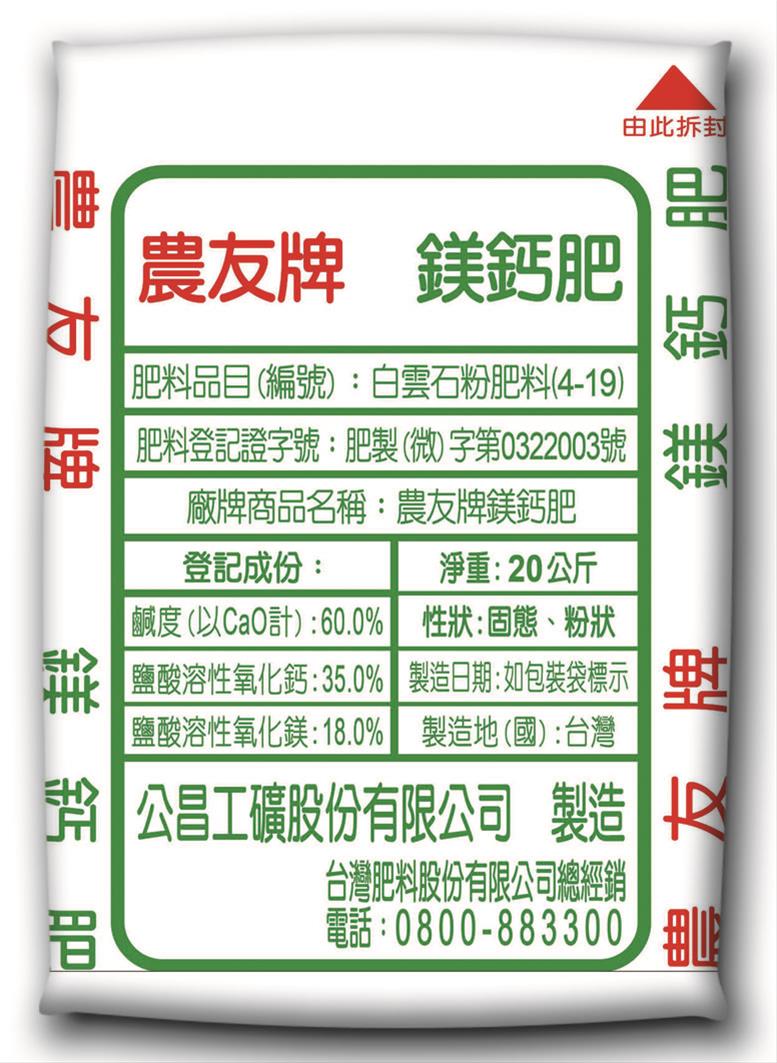 7. 登記證:肥製(微)字第0322003號,白雲石粉肥料(4-19)。